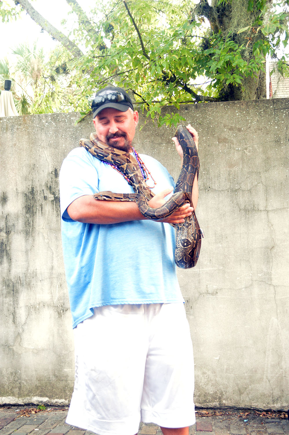 Jeremy Varnadore holds his pet boa constrictors, George and Pumpkin, on Cuna Street in downtown St. Augustine on Oct. 17, 2019.